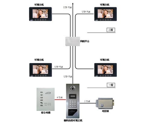 在樓宇對講機(jī)系統(tǒng)接線圖中我們可以看到,圖的下方有一個電源此電源的主要作用是保證對講機(jī)在使用的過程中不會斷電。實際上,此UPS電源時刻都處于充電狀態(tài),只有在停電的時候起著備用電源的作用。除此以外,在接線圖中我們可以看到一把電控鎖。只要輕輕的按下這個電磁鎖,樓下的大門就可以打開,這種鎖靈活方便,實用性強。