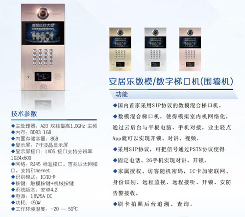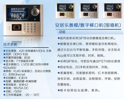 安居樂(lè)數(shù)字對(duì)講系統(tǒng)把模擬信號(hào)和數(shù)字信號(hào)融為一體,安居樂(lè)數(shù)字后臺(tái)搭建業(yè)主、物業(yè)管理、周界商圈、廣告經(jīng)營(yíng)、O2O的大數(shù)據(jù)交流平臺(tái),充分發(fā)揮各自?xún)?yōu)勢(shì)資源,共同營(yíng)造增值空間,體現(xiàn)各自社會(huì)價(jià)值。讓用戶切身體驗(yàn)到:"家就在眼前,社區(qū)就在身邊,世界就在指尖,生活就在安居樂(lè)。"
