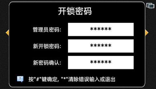 1) 設(shè)置公共開鎖密碼和公共挾持開鎖密碼,輸入正確的管理員密碼,可設(shè)置新的公共開鎖密碼和公共挾持開鎖密碼。注:兩個(gè)開鎖密碼關(guān)系為反序,且不可相同。系統(tǒng)出廠時(shí)默認(rèn)的公共開鎖密碼是012345,默認(rèn)挾持開鎖密碼為543210。假如將公共開鎖密碼設(shè)置為666666或121121,則公共挾持開鎖密碼與公共開鎖密碼相同,違反設(shè)置規(guī)則,提示設(shè)置失敗。
