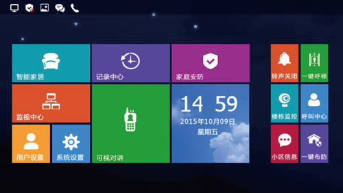 3)快捷按鍵包括:鈴聲開啟,樓棟監(jiān)控,小區(qū)信息,一鍵呼梯,呼叫中心,一鍵布防。