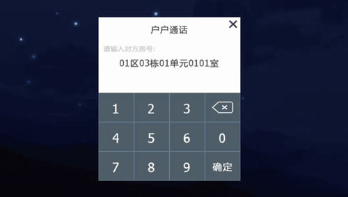 1)輸入對方房號進行戶戶通話,數(shù)字鍵輸入房號, X 刪除錯誤輸入,確認后呼出,例如呼叫1區(qū)1棟1單元101戶業(yè)主,如圖3.2.1: