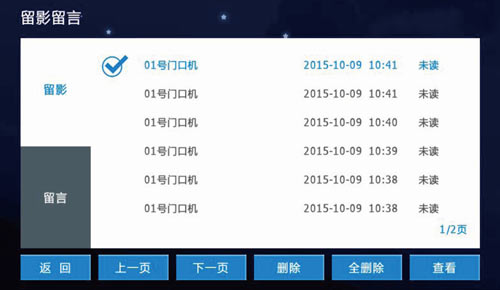 1)存儲單元機或圍墻機呼叫超時時,訪客給業(yè)主的留影與留言,留影包括留影的設備位置,留影時間和已讀未讀,留言包括留言