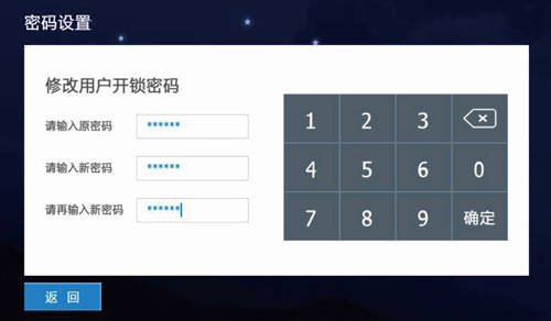 1)可設置1、用戶開鎖密碼,2、用戶挾持開鎖密碼,3、用戶撤防密碼,4、用戶挾持撤防密碼,1與2相同,3與4相同且和1逆序,密碼1與2不能和3與4相同,例如密碼1和密碼2為“123456”,那么密碼3與密碼4為654321,密碼合理。若密碼1和密碼2為123321,那么密碼不合理,設置失敗。如圖3.7.6: