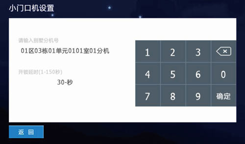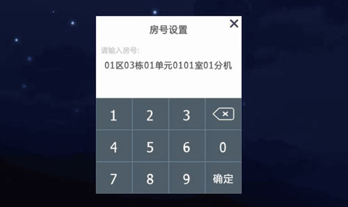 1)設置當前設備的房號,包括XX區(qū)XX棟XX單元XXXX室XX分機等信息,例如設置為01區(qū)03棟01單元0101室01分機,點擊確定保存,如圖3.8.3: