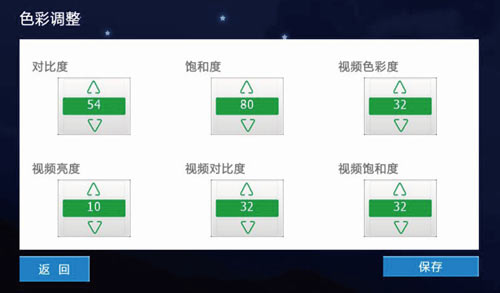 1)可設置屏幕的對比度、飽和度、視頻色彩度,通信視頻流的亮度、對比度、飽和度,參數(shù)的設置范圍為1-100,如圖3.8.8: