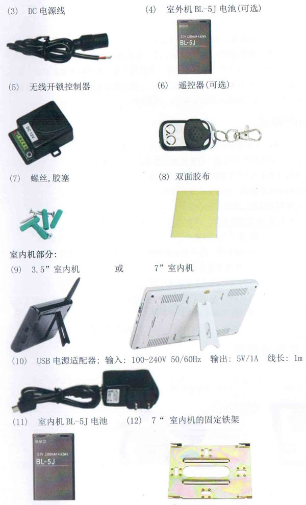 核心:無線可視對講門鈴套裝適用于辦公室,劉墅,小院落,單元家庭,公寓等場所