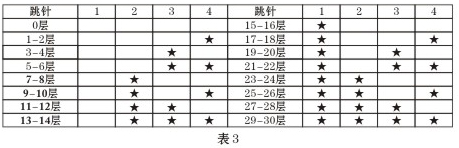 在待機狀態(tài)下在主機輸入#0000200302這個指令,主機進入兩層共用一個解碼器的標準房號編碼狀態(tài),解碼器樓層號編碼表,如下表3所示: