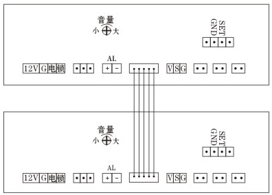 7、 數(shù)據(jù)復(fù)制: 斷電,撥掉主機按鍵板,用5P對插線插在按健板插座上,把2個主機板連接在起,如下圖所示。在目標板主板上供電,供電后在目標板上短路一下“GND和SET”跳針,聽到繼電器振動約10秒后停止數(shù)據(jù)即復(fù)制成功,這時2個主機板的卡數(shù)據(jù)相同,在多門口要求卡相同可以快速復(fù)制而不用每臺主機都用管理卡增加。