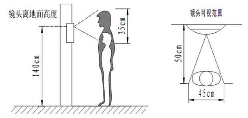 5) 主機(jī)安裝高度不能過(guò)高,主機(jī)鏡頭離地面高度為140CM-150CM為最適合。