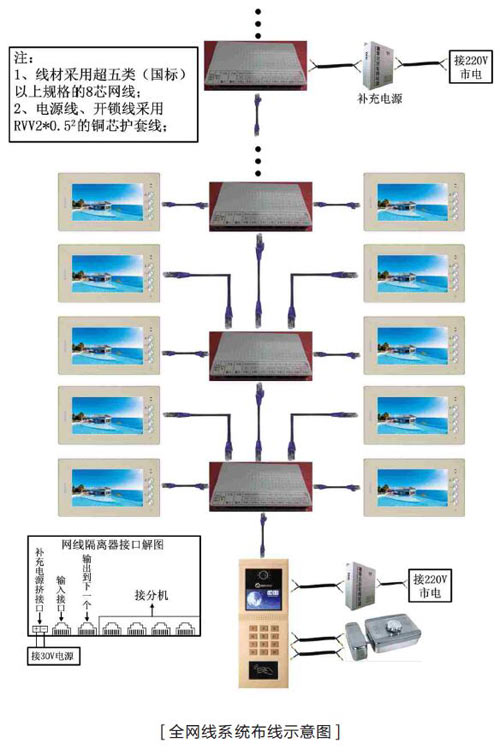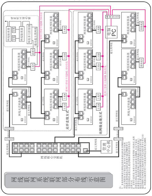 1、本系統(tǒng)聯(lián)網(wǎng)部分網(wǎng)線走線距離最遠(yuǎn)距離為700米。光纖走線距離不計(jì)算在內(nèi),如小區(qū)中最遠(yuǎn)的主機(jī)到網(wǎng)線路由器網(wǎng)線的走線距離如果不超過(guò)700米即可采用純網(wǎng)線的走線方式,超過(guò)700米即需要采用光纖走線方式。