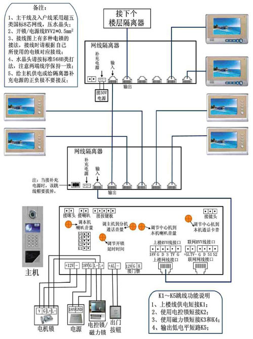 5、分機(jī)不能對(duì)講:檢查分機(jī)喇叭和各端口的連線是否正確;